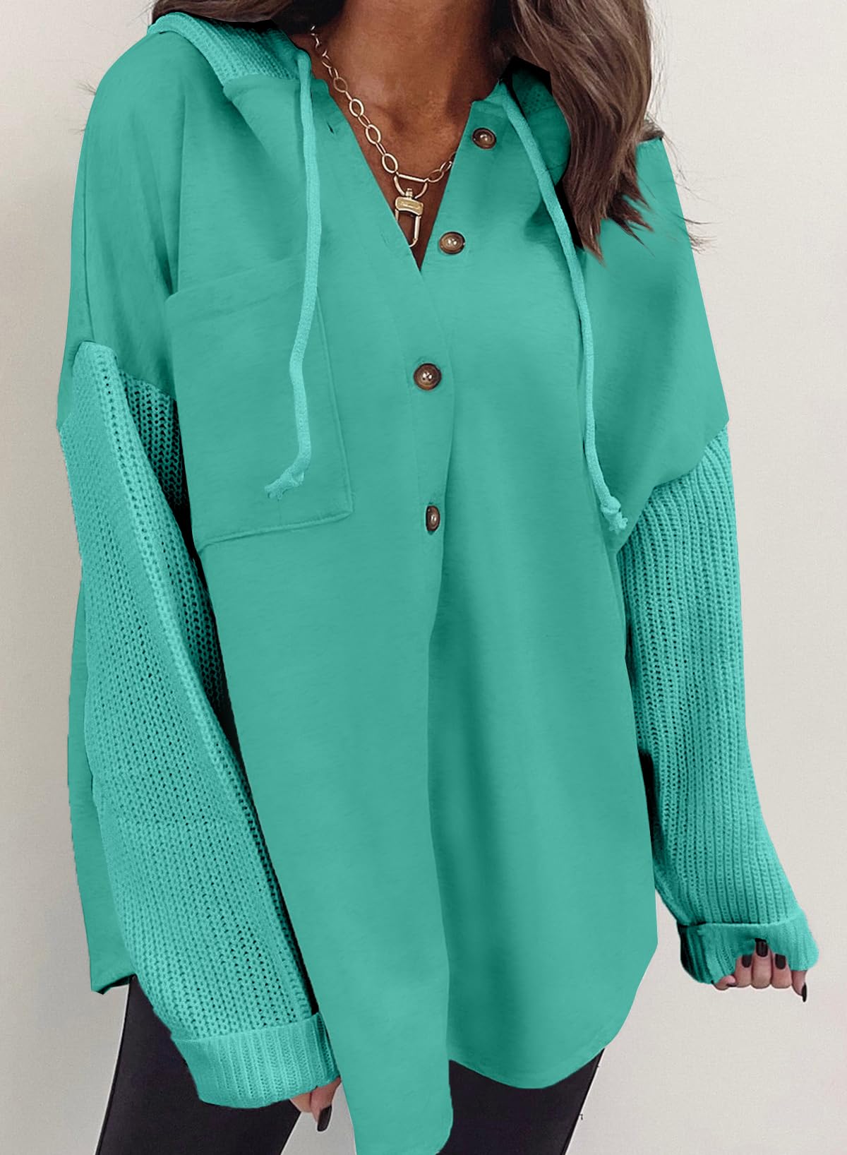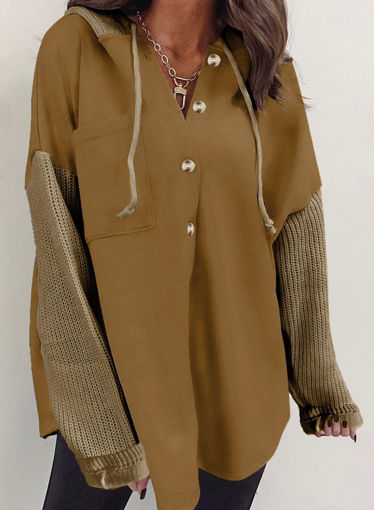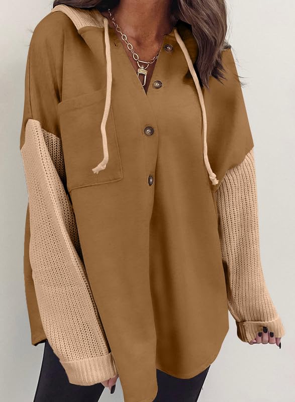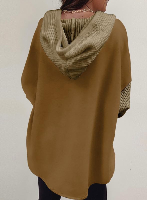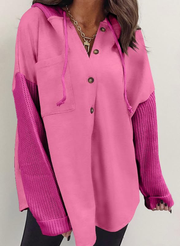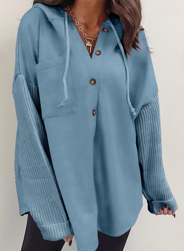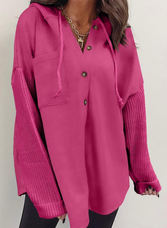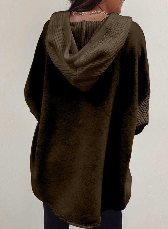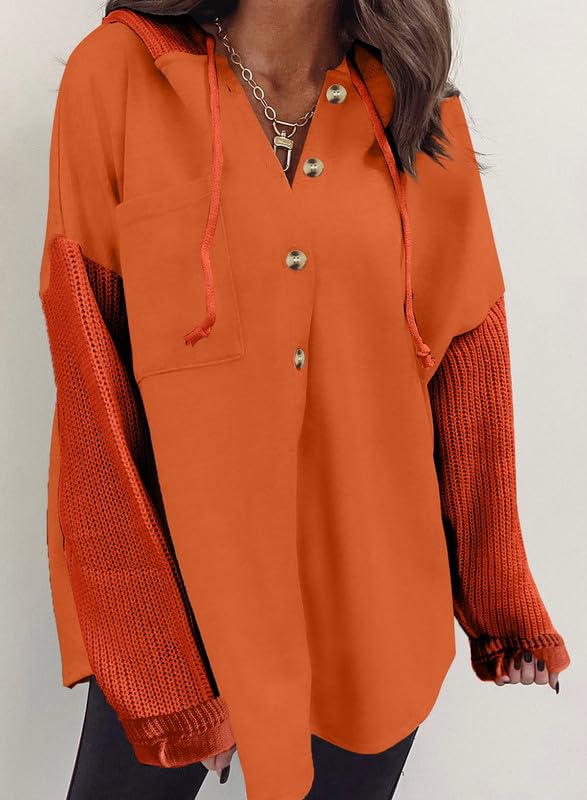 SHEWIN Oversized Sweatshirts for Women Loose Fit Casual Long Sleeve Button Hooded Sweatshirt Hoodie with Pocket