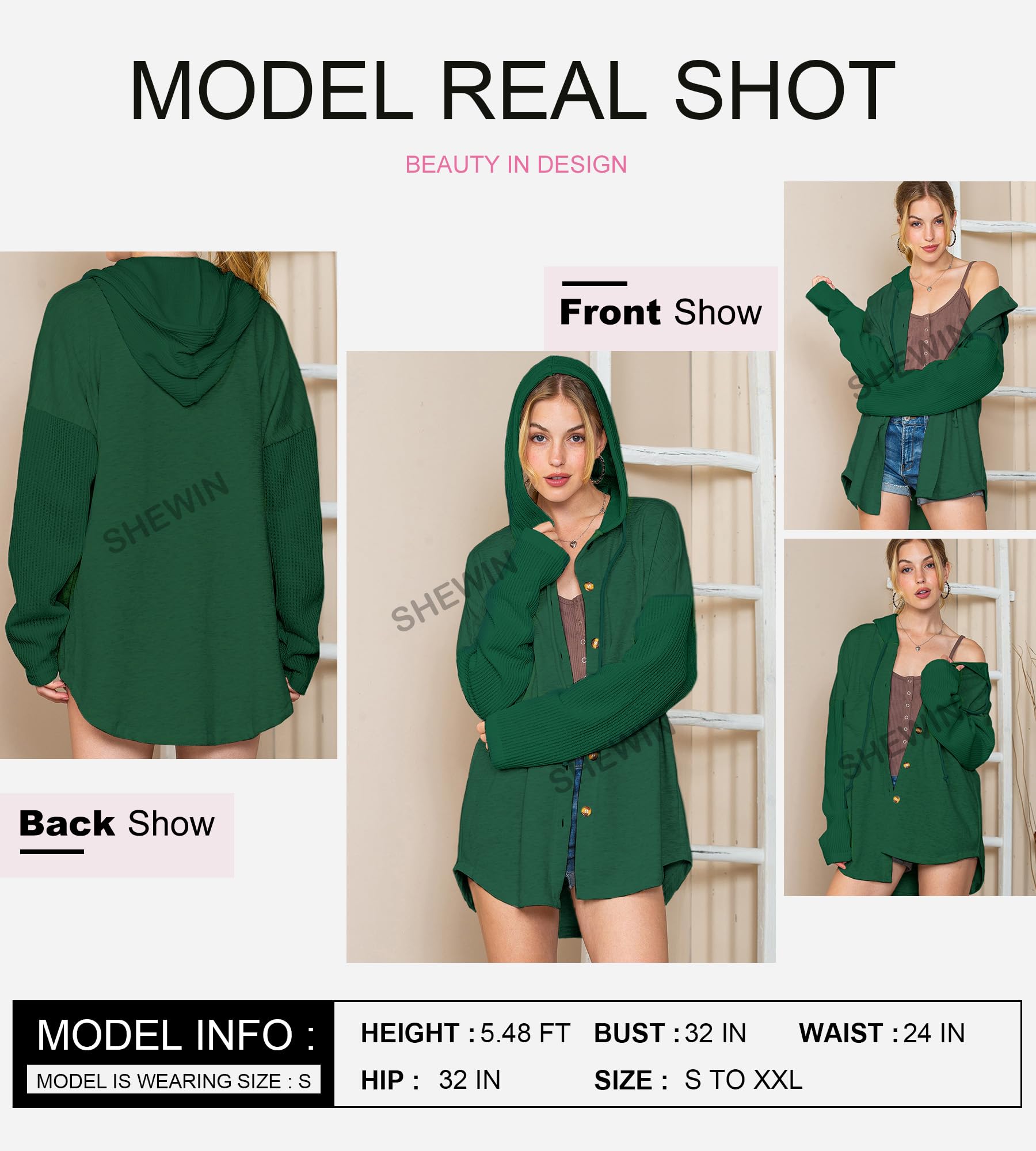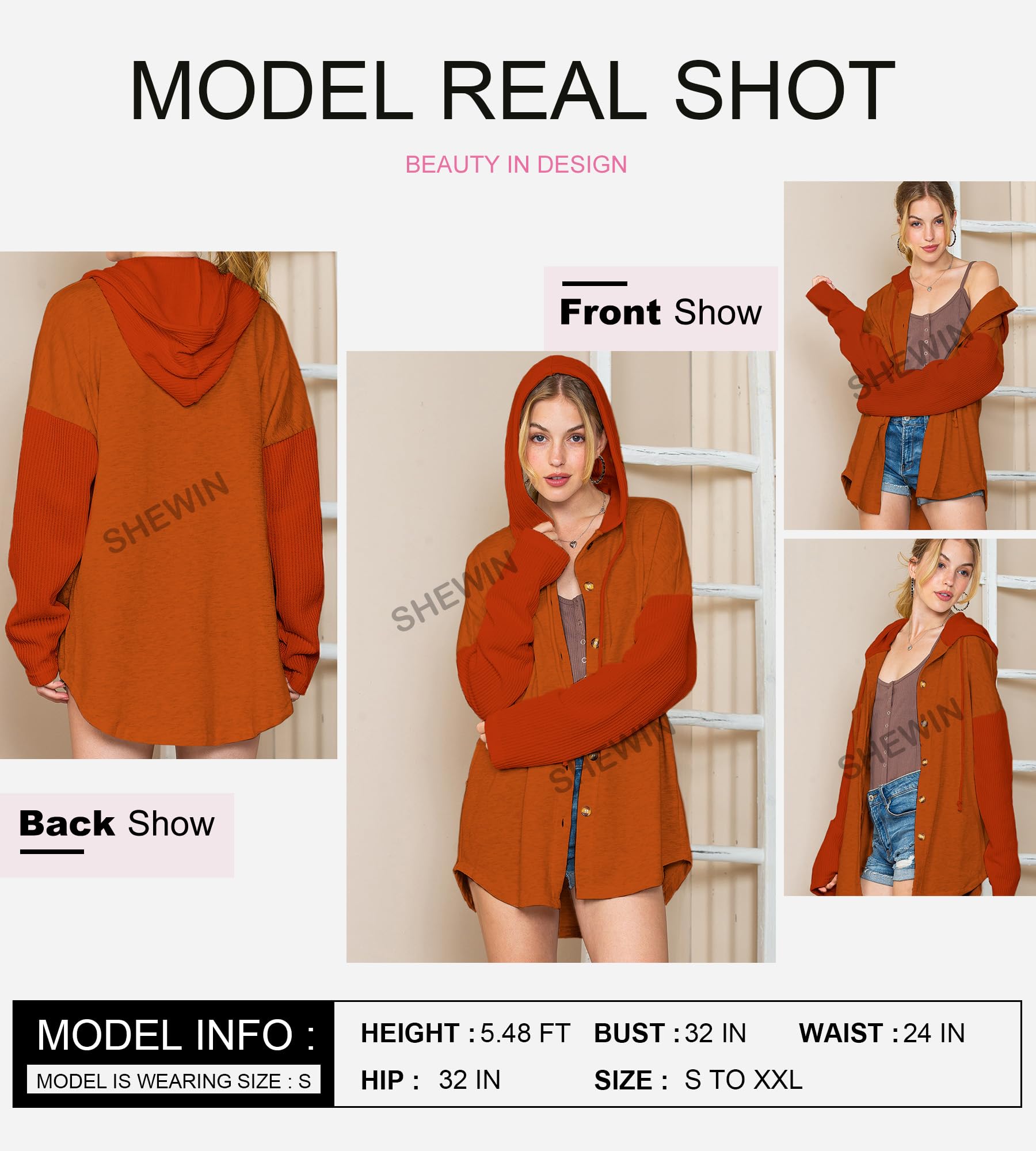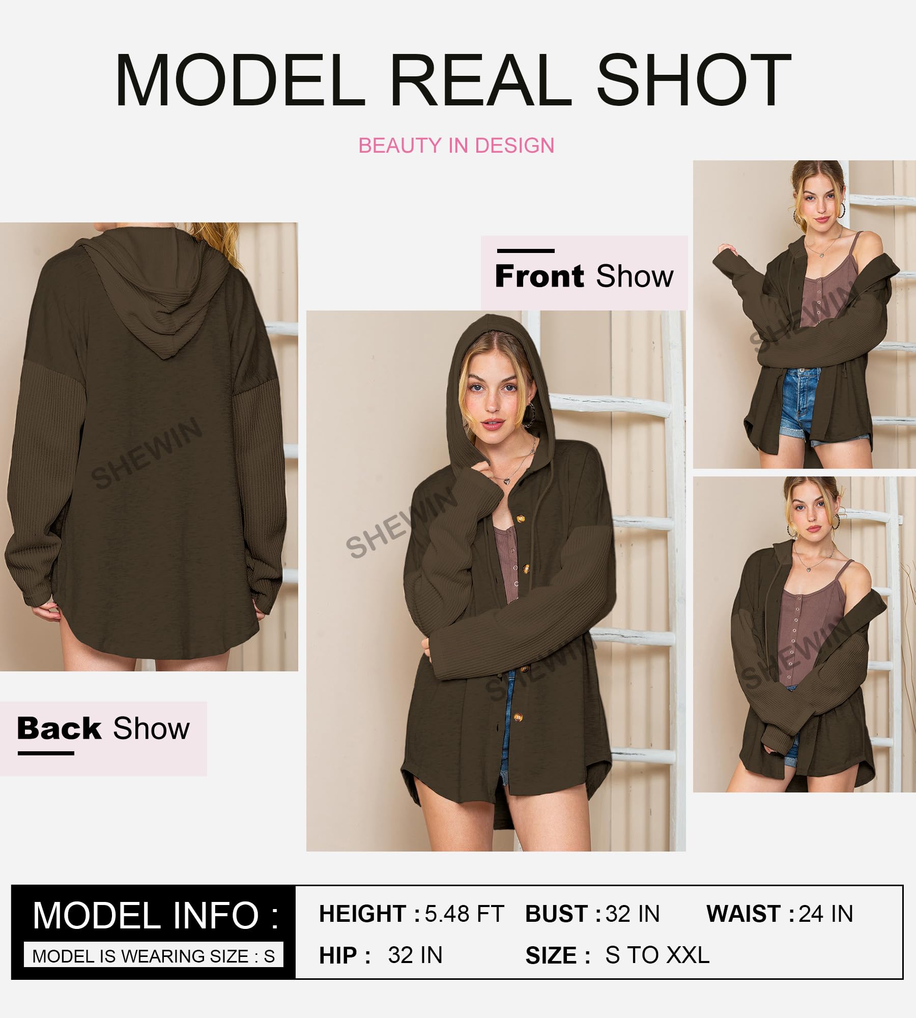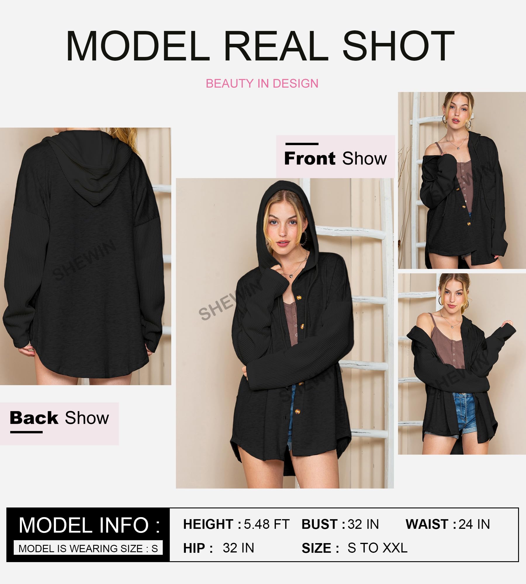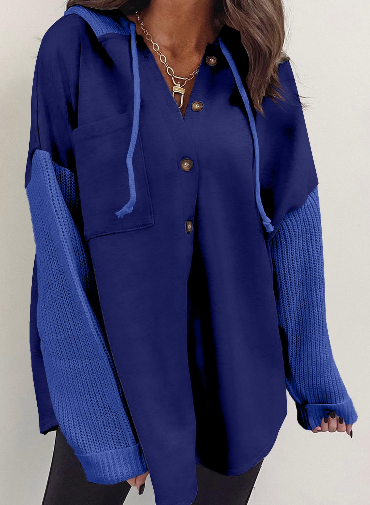 SHEWIN Oversized Sweatshirts for Women Loose Fit Casual Long Sleeve Button Hooded Sweatshirt Hoodie with Pocket